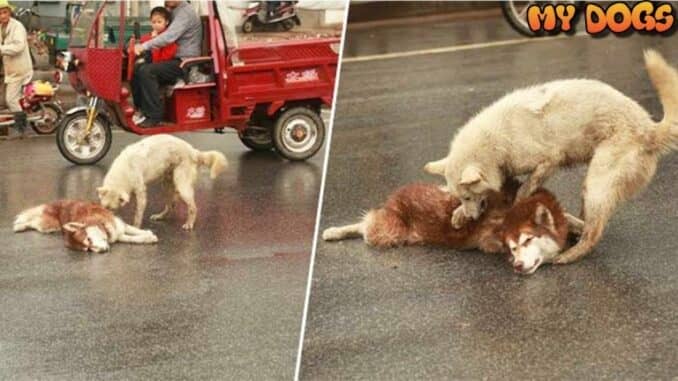 A Faithful And True Friend.A Husky Refuses To Leave His Friend’s Side Who Was Hit By A Car