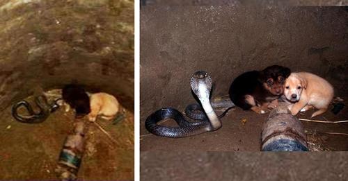 Someone Threw Puppies Into A Well, And A Poisonous But Extremely Friendly Cobra Helped Them