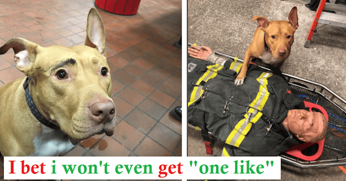 Deserted pit bull now lives her greatest life with the firefighters who rescued discovered her in a snowstorm
