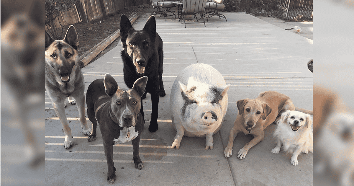 Pot Bellied Pig Happily Raised with 5 Dogs Thinks He’s Just Like His Canine Crew