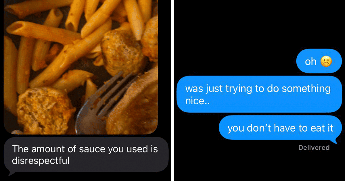 Guy Tries To "Motivate" GF By Saying Her "Disrespectful" Pasta Reflects How Little She Loves Him