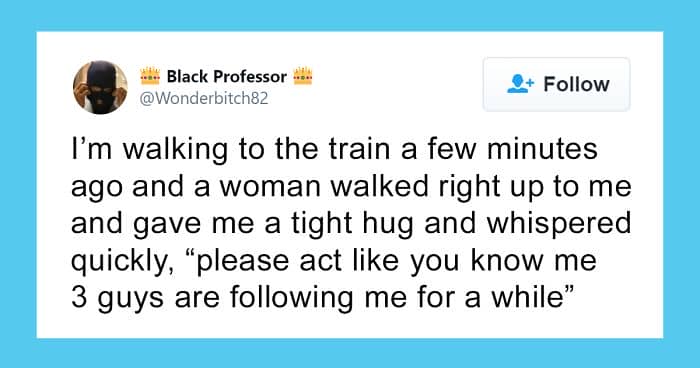 Woman Gets Followed Home By Three Strangers, Hugs This Black Guy And Asks Him To Help Her